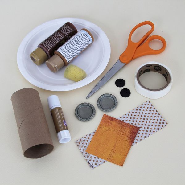 از کاغذ های رنگی برای نوک به صورت لوزی و بال ها به صورت مستطیلی که عرض آن پرانتزی برش خورده و طول آن کم تر از محیط دایره ی رول باشد،که دو سر آن به هم نرسد؛ قیچی می کنیم و دگمه ها را وسط در نوشابه های فلزی که پرس شده اند می چسبانیم.