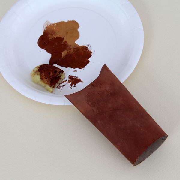 ابتدا با کمک چسب کاغذی یک سر رول را مانند شکل می بندیم و سپس با اسفتج آن را با دقت رنگ می زنیم.
