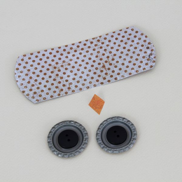 ابتدا یکی از چشم ها را در محل می چسبانیمو سپس لوزی نوک و سر انجام چشم دیگر را می چسبانیم.