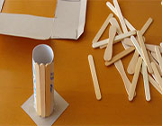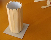 3- یک طرف چوب بستنی ها را چسب بزنید و آن ها را به صورت عمودی به رول بچسبانید. این کار را تکرار کنید تا کل رول پوشیده از چوب بستنی شود.