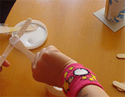 2- رول دستمال توالت را به کمک چسب مایع و چسب نواری به پایه بچسبانید.